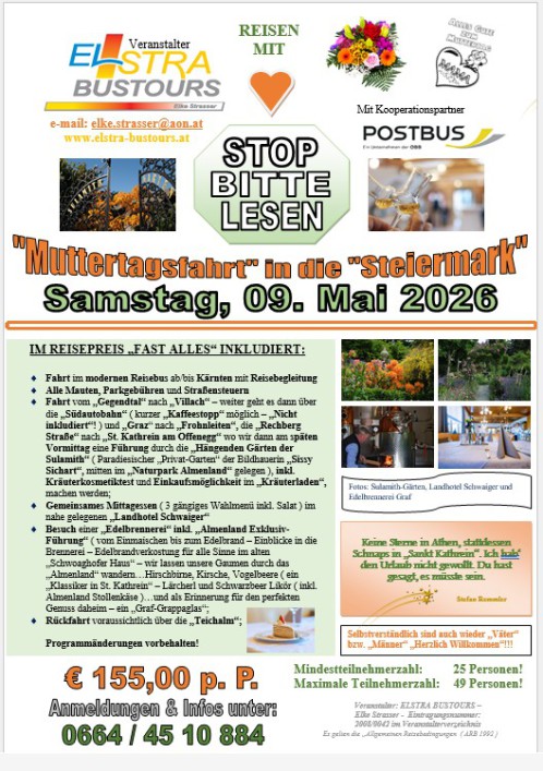 "Muttertagsfahrt in die Steiermark" - 09. 05. 2026
