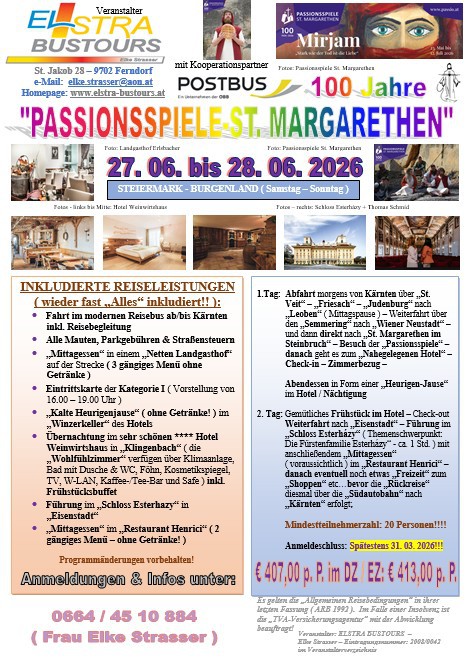 "Passionsspiele St. Margarethen" - 27.06. bis 28. 06. 2026