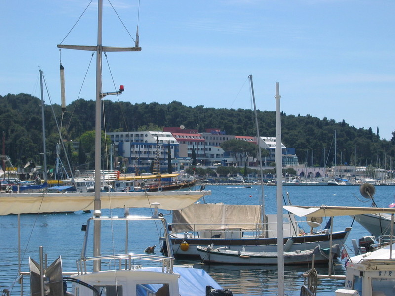 von Tausenden Touristen. Rovinj und seine waldbedeckten
